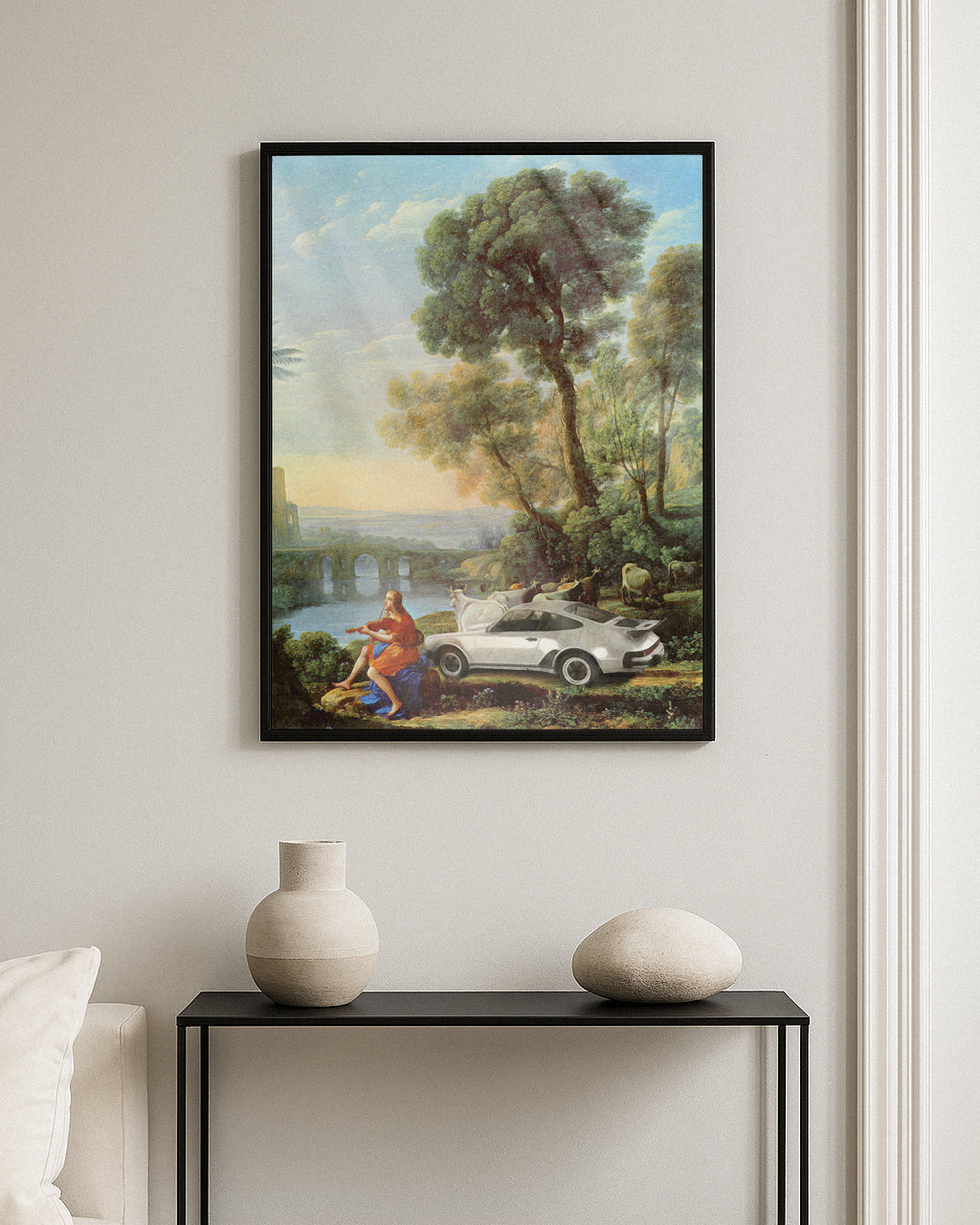 Print with a wooden frame.