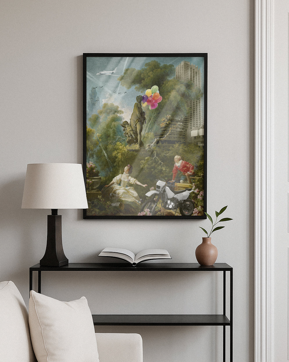 Print with a wooden frame.